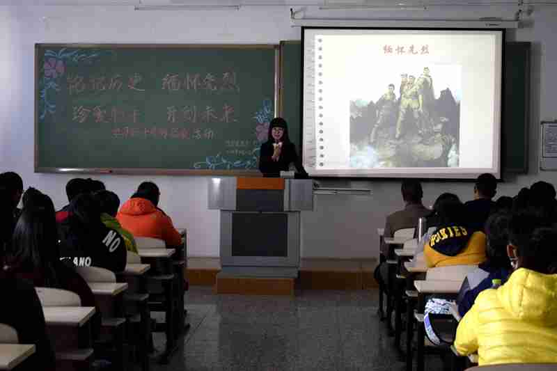 主讲人主要从铭记历史、缅怀先烈、珍爱和平、开创未来四个方面展开了主题,为同学们展示了卢沟桥事变、南京大屠杀、北平沦陷、天津沦陷等一系列的历史照片。随后,她又为同学们介绍了董存瑞的光辉事迹并邀请一些同学们分别叙述了刘胡兰、狼牙山五壮士、赵一曼、黄继光等一系列先烈的生平事迹。主讲人用高昂的声音激励同学们要珍惜和平,绽放光彩,把现场的气氛推向了高潮。最后,主讲人号召同学们要有自己的奋斗目标,严肃自己的言行举止,做好自己的本位,珍惜现在的美好生活,做时代的主人,做未来的引领者。