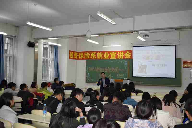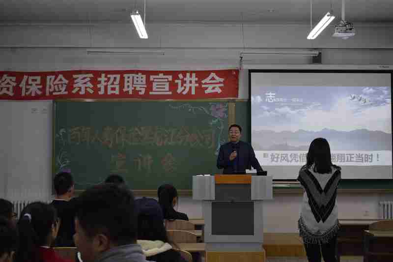 为了源源不断向社会提供人才资源,进一步提高投资保险系学生就业率,满足毕业生多种就业选择,投资保险系于2016年10月19日联合北京太平人保险公司、百年人寿保险公司、阳光人寿保险合肥电销中心在新教学楼102、128、120室分别举办了招聘宣讲会。投资保险系副主任副书记张杰老师、2013级辅导员董秀玲老师出席了本次宣讲会。