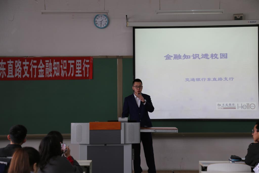 活动伊始,交通银行东直路分行客户经理高峰为本次宣讲会致辞,感谢哈尔滨金融学院为交通银行提供一个宣讲的平台。高峰经理表示,随着网络金融的不断发展,网络贷款的风险也在逐步增加,提高学生的金融安全意识,显得尤为重要。高经理通过自己的工作经历向同学们传授了金融行业的基础知识,表明了良好的信用记录在生活中的重要性。他认为,信用是当代公民必备的素质,如失信于社会,将难以在社会中立足,希望同学们在校的时候培养自己诚实守信的良好品质,适度消费,勤俭节约。紧接着,东直路分行行王行长对当今的金融行业情形进行分析,王行长专业敏锐的剖析令同学们称赞沉迷。他指出,人工柜台将逐步被人工智能所替代,就业岗位会更加紧张,同学们只有在大学时期努力提升个人硬实力,才会在就业大军中脱颖而出。最后,王行长对2016级全体同学寄予殷切希望,他号召同学们要脚踏实地,认真走好未来的每一步,交通银行东直路支行也会为同学们搭建实现个人梦想的舞台。