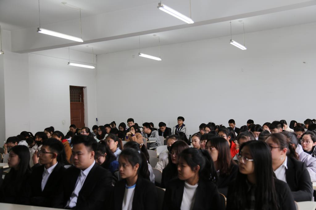 为了积极响应中国银监会、共青团中央、教育部关于金融知识进校园活动的号召,增强大学生对有害网络贷款的甄别、抵制能力,警示学生远离金融诈骗、电信诈骗,投资保险系于2019年3月13日在综合楼101联合交通银行东直路分行开展金融知识进校园活动,2016级本科全体同学出席了本次宣讲会。