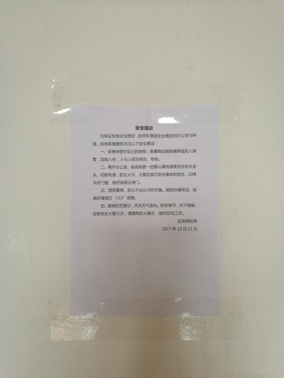 为了贯彻落实“教育部办公厅关于切实做好岁末年初及寒假期间学校安全生产工作的通知”和黑龙江省教育厅相关工作文件精神,按照“哈尔滨金融学院安全稳定会议”要求,投资保险系全面开展安全检查工作。