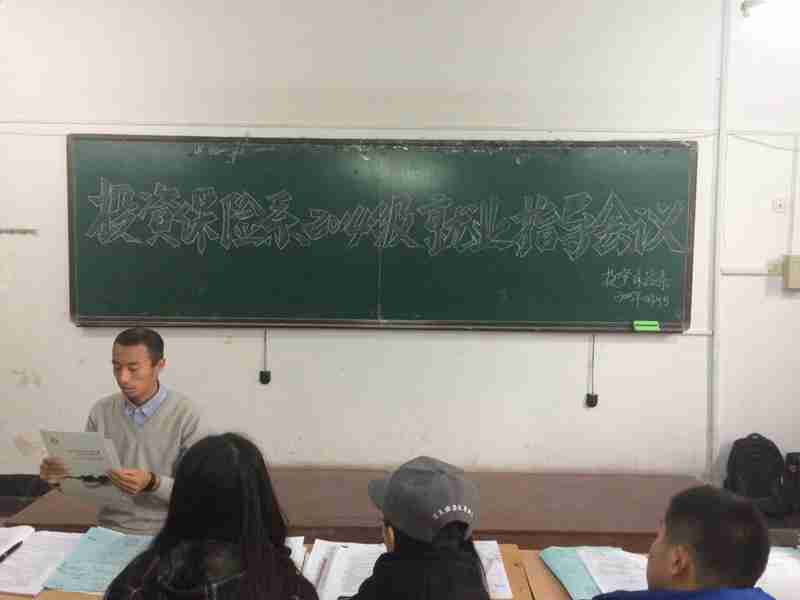 为帮助学生树立正确的就业观,积极稳步地推进就业工作的开展,投资保险系2014级于10月25日在行政楼112召开就业指导会议,2014级辅导员贲庆福老师主持会议,2014级毕业班全体班委出席会议。