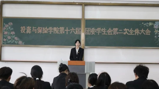 为加强学生干部队伍建设,增强团队凝聚力,明确学生干部工作职责,进一步推动各部门联动,2025年11月5日中午,投资与保险学院第十六届团委学生会在综合楼225召开了第二次全体大会。会议由团委副书记范语桐主持,第十六届团委学生会全体成员出席了本次大会。