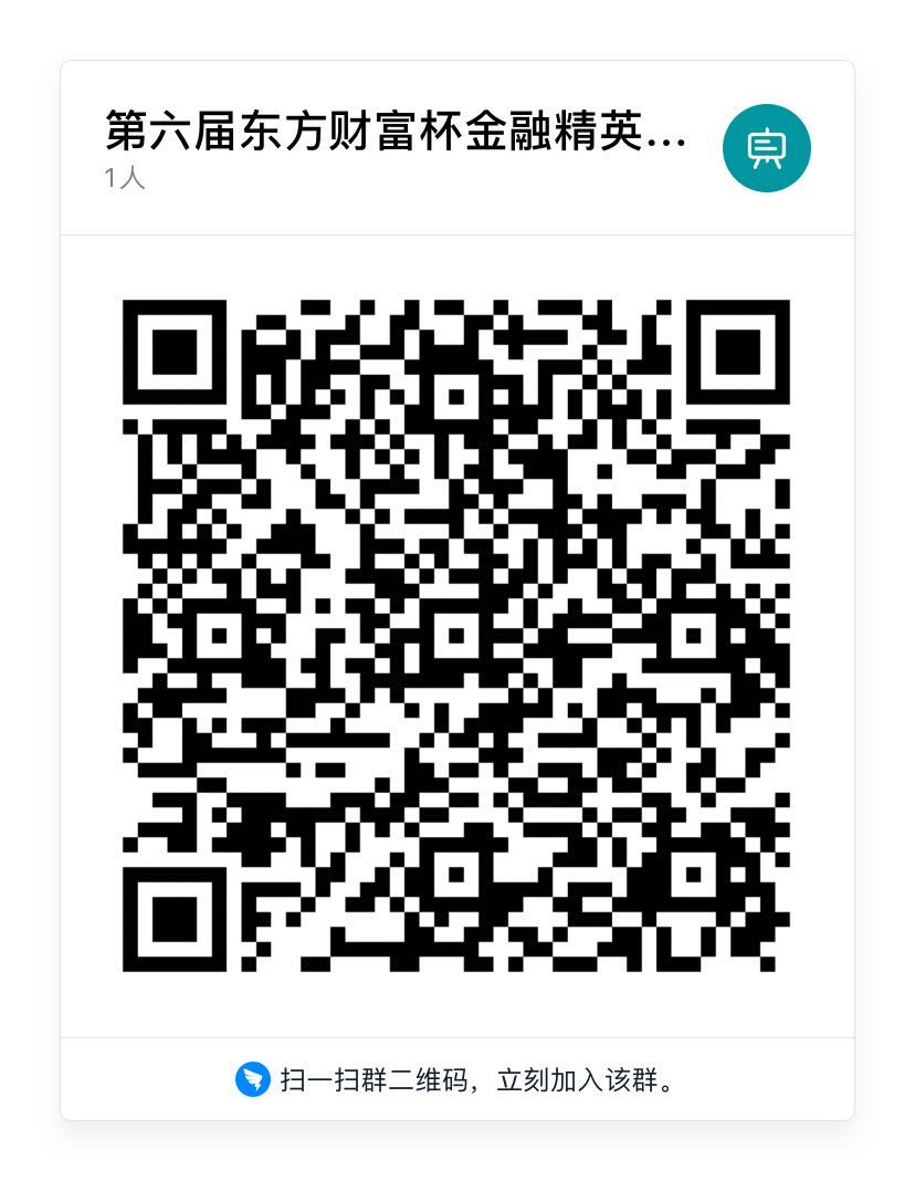 培训地点:钉钉群直播(请扫下方二维码加入“第六届东方财富杯金融精英挑战赛金院培训群”)