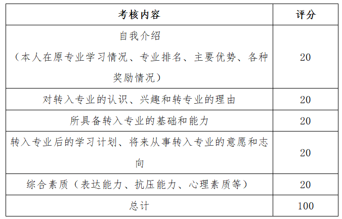 投资与保险学院转专业面试内容及评分标准
