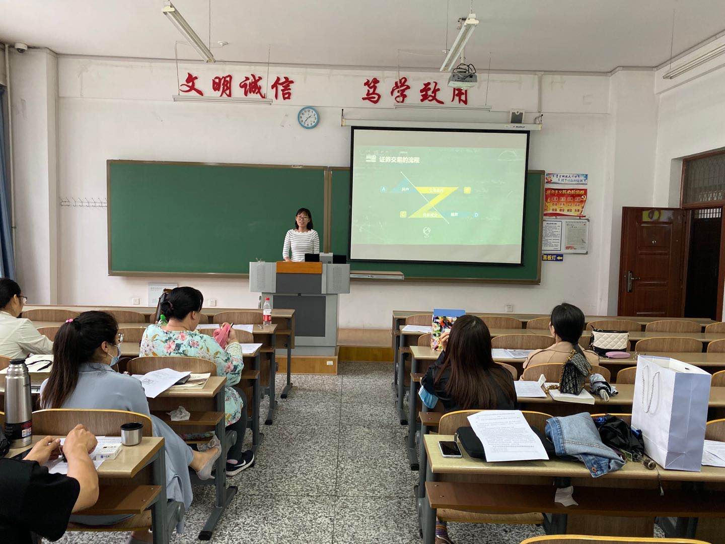 投资保险系共有新入职教师八人。试讲前期,八位新入职教师都积极准备,展示了年轻教师的风采。投资学的徐博文老师就证券投资学课程中证券交易成本的相关内容进行讲解。徐老师结合贵州茅台股票的实例,一一解析了佣金、过户费和印花税的含义和计算方法,思路清晰,内容丰富。接下来,李蕊老师试讲的内容是公司理财中公司财务分析与财务计划。李老师结合案例,用生动的语言介绍了财务分析的方法,重难点突出,让大家很容易就理解了相关内容。刘建霞老师对个人(家庭)理财这门课程进行了讲解,刘老师深入浅出的讲解了基金定投的特点,声情并茂的对投资策略进行了介绍。胡桥茜老师对制定住房消费方案这节课的内容进行了讲解,胡老师利用现代教学手段,像讲故事一样,结合具体的案例,使这节课更加生动有趣。谢婉秋老师对固定收益证券这门课程进行了详细的介绍,课程上,谢老师与学生积极互动,用生动的语言把枯燥的问题讲解的栩栩如生。