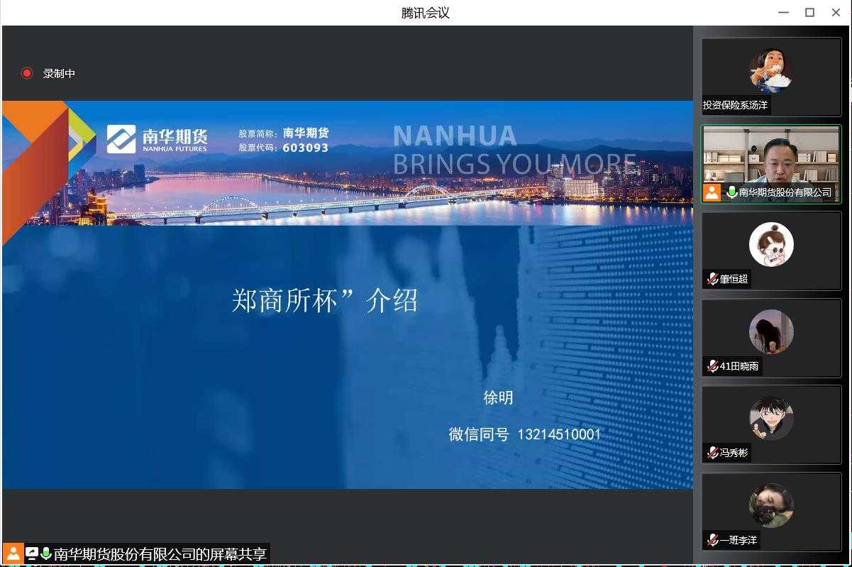 徐明老师的演讲,为老师和同学们介绍了当前期货市场的发展状况、功能和特点,对期货交易的规则和方法进行了全面的介绍。同时也对即将开始的郑商所杯金融模拟交易大赛进行了全面的介绍。自2018年以来,郑商所已连续举办四届“郑商所杯”,累计参与高校上千所,参赛学生10万余人,覆盖国内全部省级行政区,受到社会各界持续关注与广泛认可。