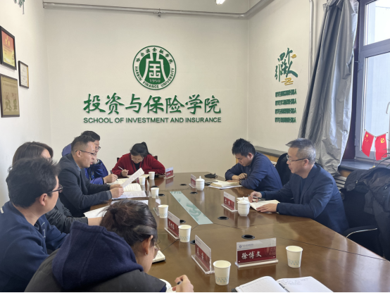 为进一步了解二级学院学科建设情况,推进教学科研工作高质量发展,副校长于雷于12月24日深入投资与保险学院开展调研指导工作,科研处处长王立志陪同调研。投资与保险学院书记郭蕾、院长刘永刚、副书记陈旭东和部分教师代表参加了此次座谈交流。