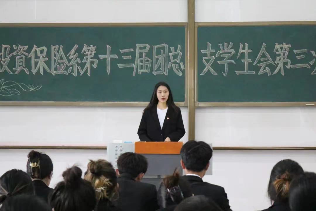 为总结近期工作开展成效,落实期末工作任务,强化学生干部责任意识,增强我系团总支学生会团队凝聚力,2023年6月2日,投资保险系第十三届团总支学生会在综合楼225召开第三次全体大会。第十三届团总支学生会全体成员出席会议,会议由学生会主席田爽主持。
