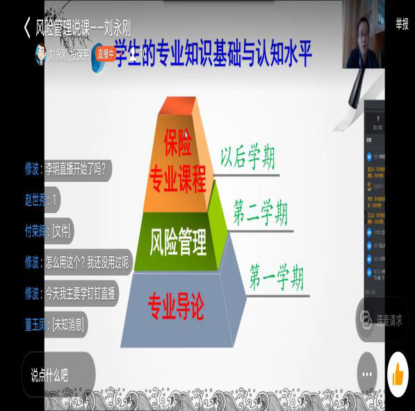 为了提高教师自身素质,调动教师投身教学改革、学习教育理论、钻研课堂教学的积极性。疫情期间,保险教研室响应学校的号召,于4月12日利用钉钉平台采用现代技术组织全体教研室老师开展了主题为“分享线上教学经验 提高教学质量”的线上说课活动。王立志主任和董雪梅副主任参加本次教研室活动。