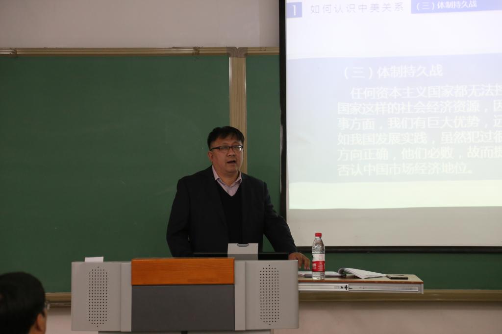 会上,乔经理从“回归本源,守正出新,明晰战略,持之以恒”的观点出发,结合我国当今经济形势,向在场的教师及同学们深刻的分析了如何使经济转型落地以及怎样更好的配合实体经济发展,他认为,中国经济转型要从实践出发,以国企为主率先转型,从而带动其他形式经济稳步发展。其次,乔经理明确指出金融战争是一场体制的持久战,掌控好关键领域的技术研发尤为重要,随着经济全球化发展,我国规模与产量在不断增长,同时资源利用率提高的问题也成为大众关注的热点。接着,他通过亲身经历向大家讲述了2008年美国次贷危机对世界经济所造成的不良影响,并强调中国要严格的进行风险管理,规避此类事件的发生。紧接着,乔立群老师表示只有将“去杠杆”、“低利率”、“量化宽松”三点结合才能保证经济健康发展,同时通过一带一路等经济手段增强人民币流动、扩大科技领域来实现经济全球化。最后,主持人表示此次讲座对我院老师的教育教学和学生的就业方向起到了指导作用,并衷心的感谢乔立群老师的分享。