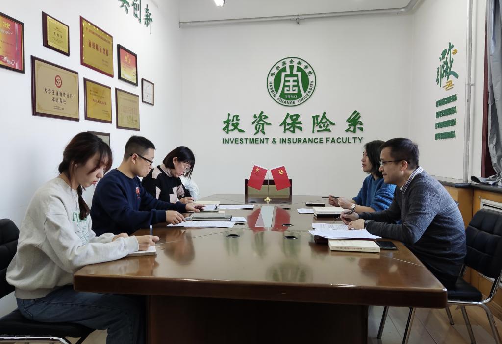 12月1日下午,投资保险系召开党总支理论学习中心组学习会,学习会由党总支书记郭蕾主持,理论学习中心组成员参加学习会。