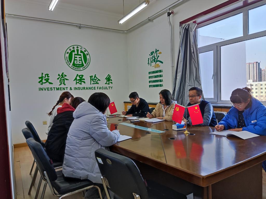 3月21日下午,投资保险系召开党总支理论学习中心组扩大学习会,学习会由党总支书记郭蕾主持,理论学习中心组成员和辅导员老师参加学习会。