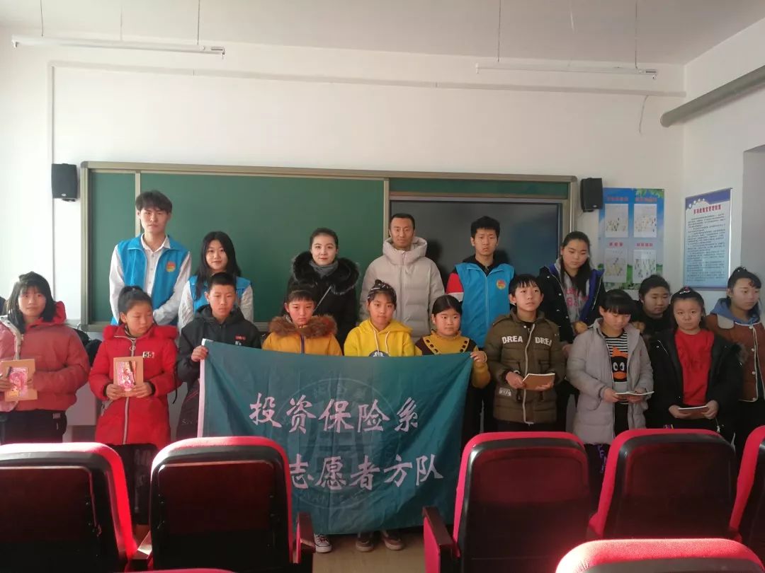 为认真学习、宣传、贯彻党的十九大精神,全面落实省高校工委、省教育厅《关于开展高校大学生与农村留守儿童“大手拉小手”关爱行动实施方案》的通知精神;为培养大学生志愿服务精神,进一步营造向上向善,互帮互助的良好风尚;为促进留守儿童健康、快乐、幸福成长,投保系团总支副书记贲庆福老师、辅导员于佳老师带队于2018年12月29日在绥化市临江中学和东风中学开展了以“理财知识宣讲”为主题的志愿服务活动。