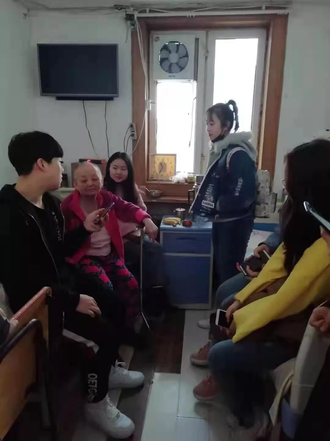 活动伊始,保险一班志愿者们来到敬老院,他们拿着准备好的水果和生活用品作为礼物送给了老人们,随后,同学们与老人们聊天,得知现在许多老人们选择敬老院,是因为子女工作忙、家里楼层过高,人老了行动不便、没人陪自己聊天等。在这里能与同龄人朝夕相伴而且有共同的兴趣爱好和相近的人生观念,让他们更能感受到夕阳无限好。一场秋雨一场凉