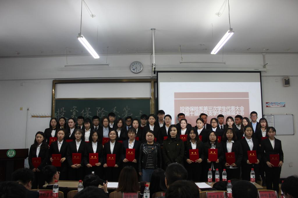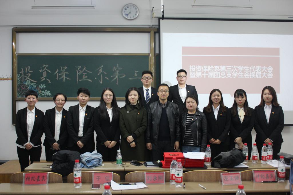 为确保第九届、第十届团总支学生会工作的有序交接,加强我系团总支学生会作风建设,积极响应“不忘初心,牢记使命”主题教育的号召,投资保险系于2019年10月17日在综合楼123召开了第三次学生代表大会暨第十届团总支学生会换届大会,党总支副书记刘永刚、团总支书记左玉帅、团总支副书记于佳、各系学生代表、投资保险系第九届团总支学生会主席团及我系学生代表170人出席了本次会议。