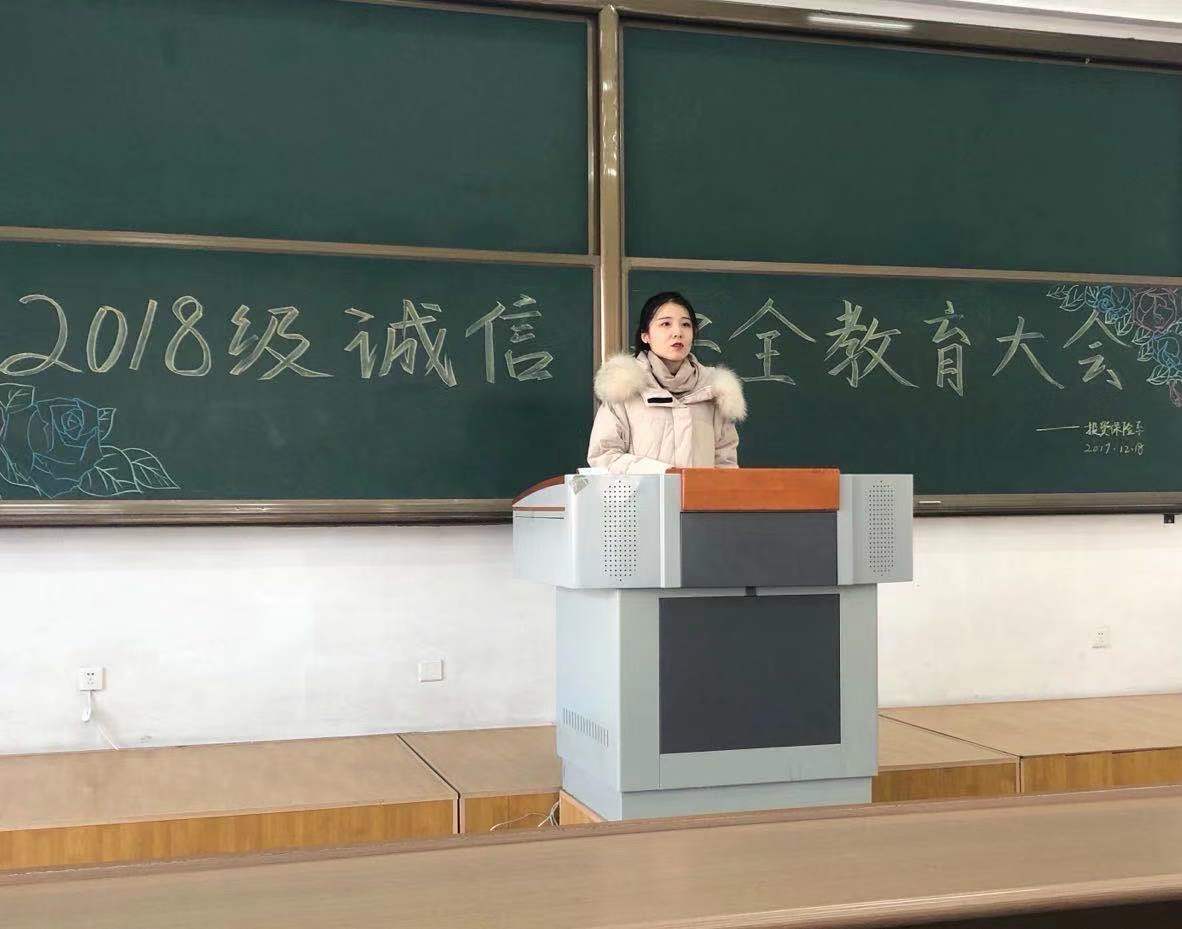 2018级辅导员于佳于12月18日在综合楼225召开了诚信安全教育大会,2018级近240名同学参加。会上,于佳强调了考场纪律,要求同学们严肃考风考纪,严格遵守考场规则,杜绝一切考试违纪行为,明确考试违纪所付出的代价和严重后果。还提醒大家假期出行注意人身财产安全,及时购买返校车票,按时注册报到。最后,希望同学们认真备考,以诚信的态度对待每场考试,能够取得优异成绩。