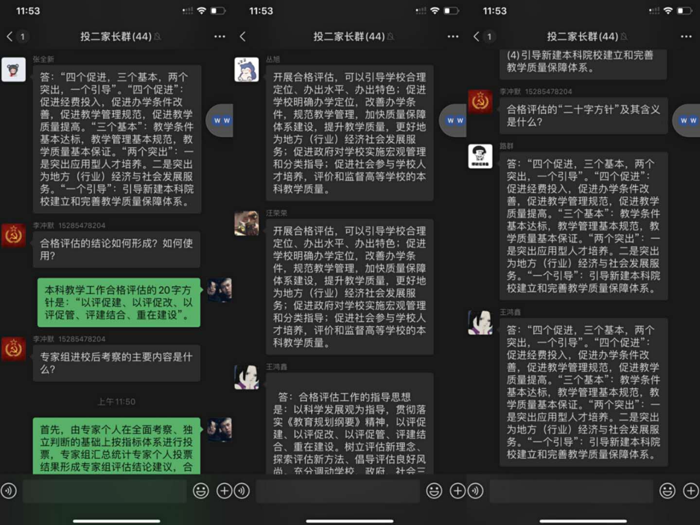 2018级辅导员于佳组织各班召开了“云”班会,2018级全体同学参加。首先,组织学生学习了《哈尔滨金融学院本科教学合格评估知识手册(学生版)(一)合格评估基本知识》,宣传和普及本科教学合格评估的内容、要求及意义,提醒同学们在评估期间要规范自身行为,展现良好校风和学风。随后,同学们积极讨论和学习合格评估相关知识,并通过短视频方式进行宣传,展现班会开展过程及学习成效,利用动态效果达到学习目的。其后,介绍了国家安全相关知识,强调了国家安全防范人人有责,当代大学生应当牢固树立责任感和使命感,维护好个人及国家利益。同学们踊跃发言,认识到国家安全问题的重要性,增强了自身国家安全意识。最后,针对疫情特殊时期,于佳呼吁,希望同学们以自身行动守好“小”家,与逆行者一同保住“大”家,身为哈金院学子将合格评估知识记在心间,为迎评促建贡献自己的力量。