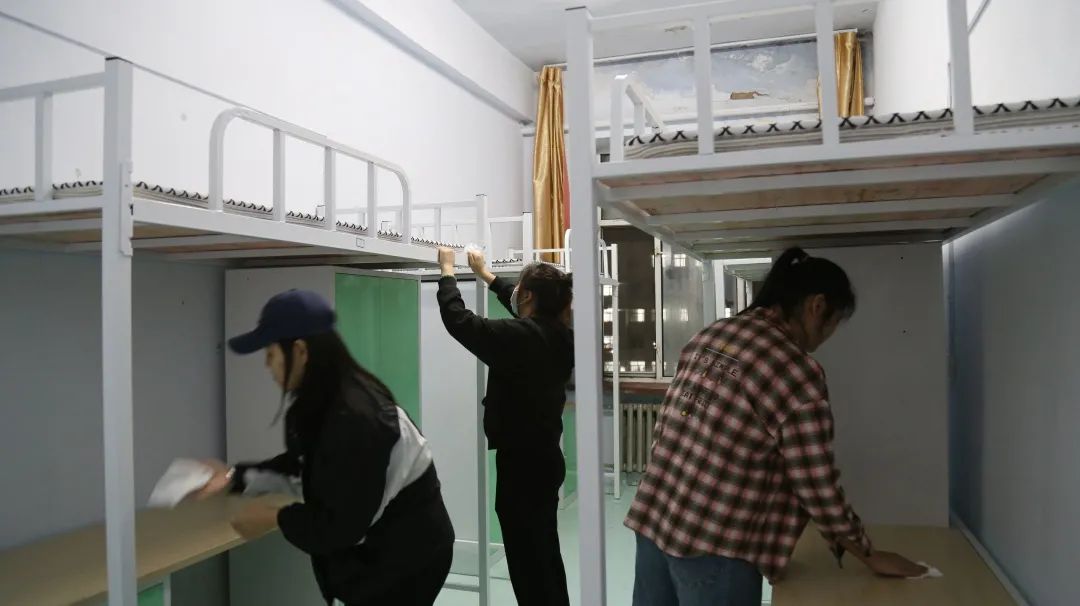 志愿者们分工协作,积极展开清扫活动,楼道里随处可见大家忙碌的身影,打扫工作有条不紊的进行。志愿者们细致入微,不光对地面、抽屉里的杂物进行了清理,还仔细擦拭了窗台、玻璃、桌椅、床板,最后,将寝室内的桌椅摆放整齐,对房间里的每一个细节之处都进行了仔细的打扫。经过志愿者成员们的共同努力,寝室环境得到了很好的改善,新生宿舍面貌焕然一新。在检查验收时,宿管部对打扫成果予以肯定。