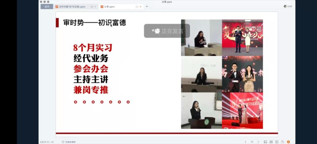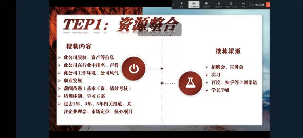 首先由边昕分享个人经历,她讲述从学校过渡到社会都会有一个迷茫期,应努力提升自己在校园中的相关锻炼,对于未来工作有很大帮助。边昕还建议毕业生不要有职业偏见,可以通过招聘会,宣讲会以及实习了解企业在行业中的声誉和企业理念。随后生动的讲解了如何制作和投递简历,以及着装,应聘技巧等方面的知识,并通过实际案例分析面试中无领导小组讨论的的相关注意事项,带给同学们面试考核技巧。最后,希望毕业生们能够调整好自己的心态,不断提升自己的价值,在相应的领域里发光发热。