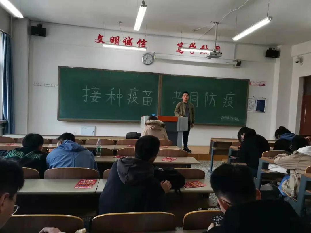 结合哈尔滨市教育系统新冠病毒疫苗接种工作视频会会议精神和工作要求,投资保险系团总支组织召开了专家座谈会和主题班会。主题班会上强调,实行全民免费接种新冠病毒疫苗,是党中央、国务院作出的重大决策部署,倡议全体同学要提高政治站位,统一认识,积极配合政府、学校有关精神和工作要求,应接尽接,主动接种,积极引领投资保险系抗疫风尚,构建校园免疫屏障。