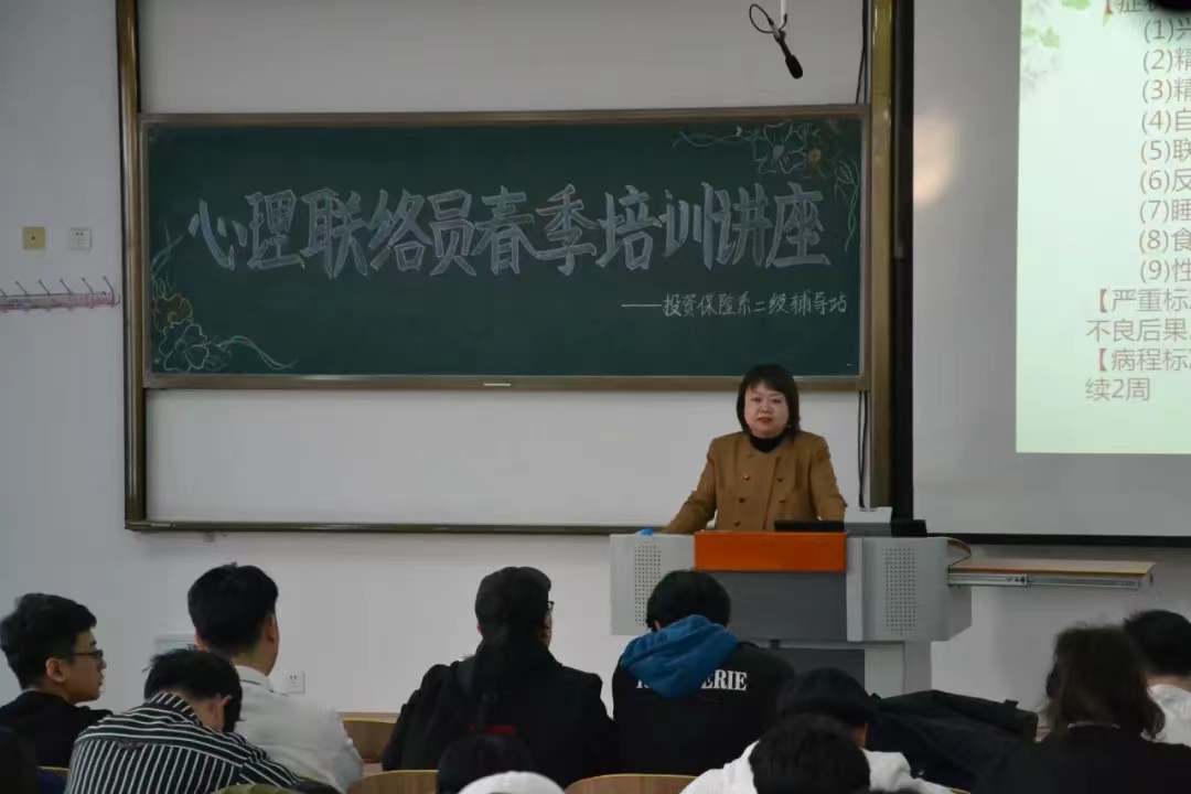 为加强大学生心理健康教育,提升大学生心理健康素养,按照学工处、院心理健康中心要求,投资保险系二级心理辅导站于3月29日下午14:00在综合楼223开展春季心理联络员培训活动。本次讲座由左玉帅主讲,全体班级和寝室心理联络员189人参与此次活动。