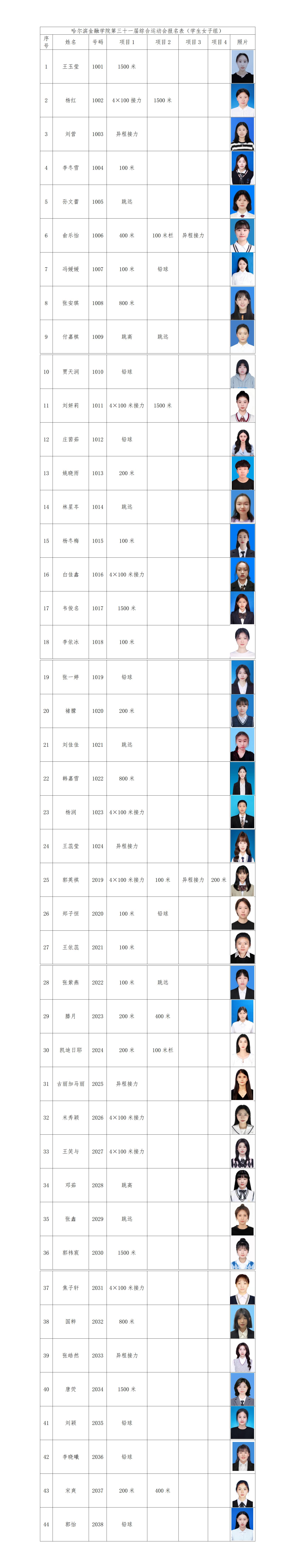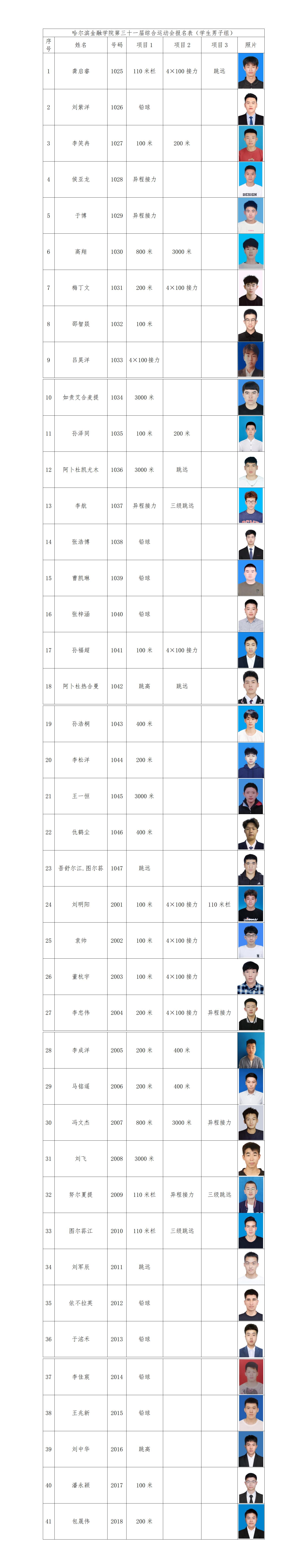 根据学院相关要求,现将投资保险系参加哈尔滨金融学院第三十一届综合运动会的学生运动员名单进行公示,具体名单如下: