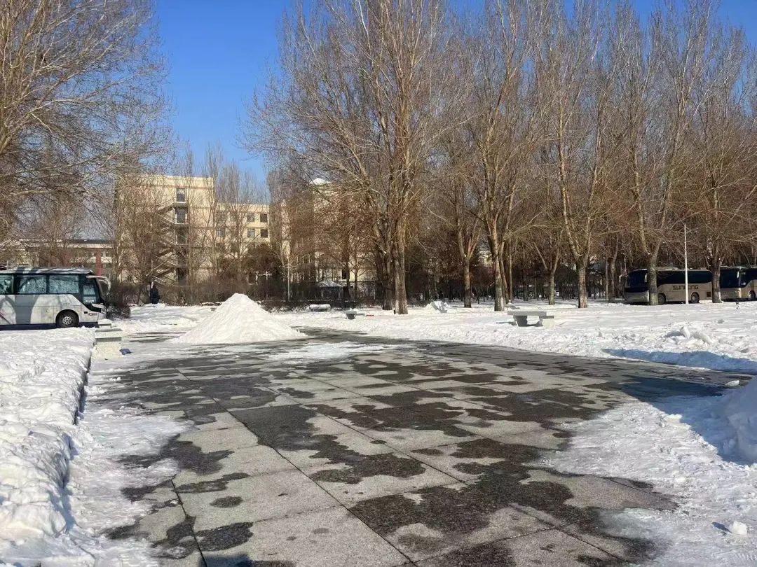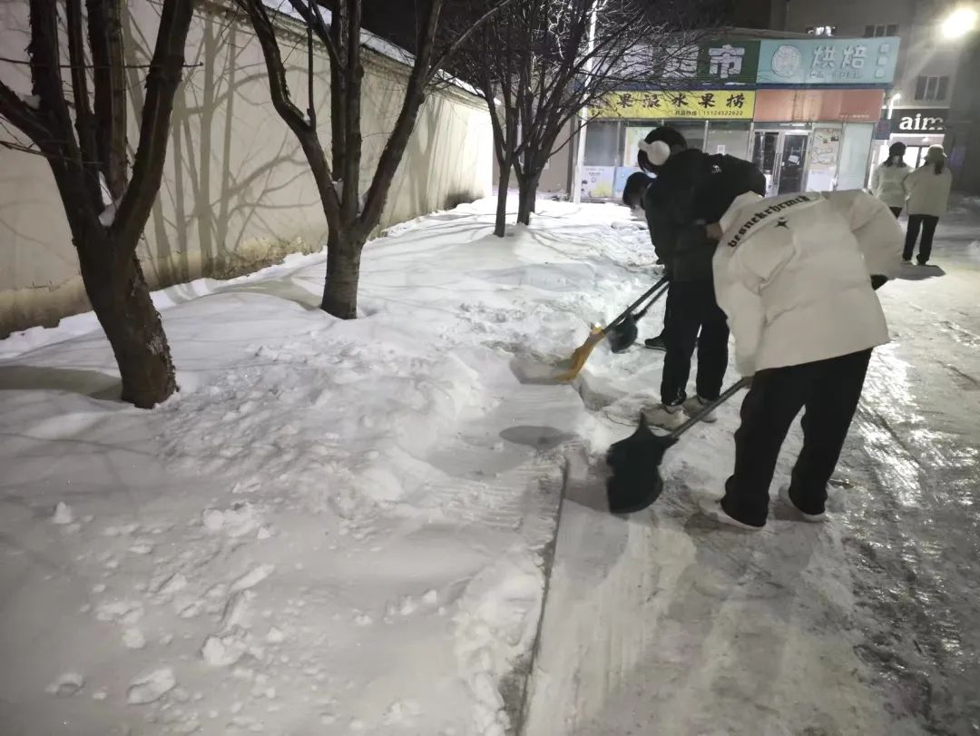 本次活动范围主要包括经管楼门口、一食堂后门口、希望广场及礼融广场等各主要干路积雪和结冰处。活动开始时,志愿者们有序地领取清雪铲、扫帚、清雪铁锹、手套等铲雪工具,蓄势待发。清扫中,由于气温较低,路上的积雪被压的很瓷实,清扫工作十分困难,但是志愿者们不畏严寒,争先恐后的积极行动,推、扬、铲、堆各种方法齐上阵,道路上演奏着“咣咣嚓嚓”的扫雪除冰“进行曲”。尽管气温很低,但手中的扫雪工具却不停地挥舞着,忙碌的身影在皑皑白雪中交织出一幅幅动人的画卷。在一个多小时齐心协力的奋战下,各主要干路坚硬的结冰处被一点一点清除,阻碍通行的积雪被堆成了雪人,既美化了校园环境,保障了师生安全,也增强了我系同学间的凝聚力和同学情。我系为每一位参与志愿服务的同学准备了暖宝宝等御寒用品,给大家送去了温暖和心意。志愿者们热火朝天地清扫着大雪,红红的脸颊彰显了我系学子志愿服务精神和青春风采,实现了“冰中路通,铲后路清”,确保了同学们的安全出行。