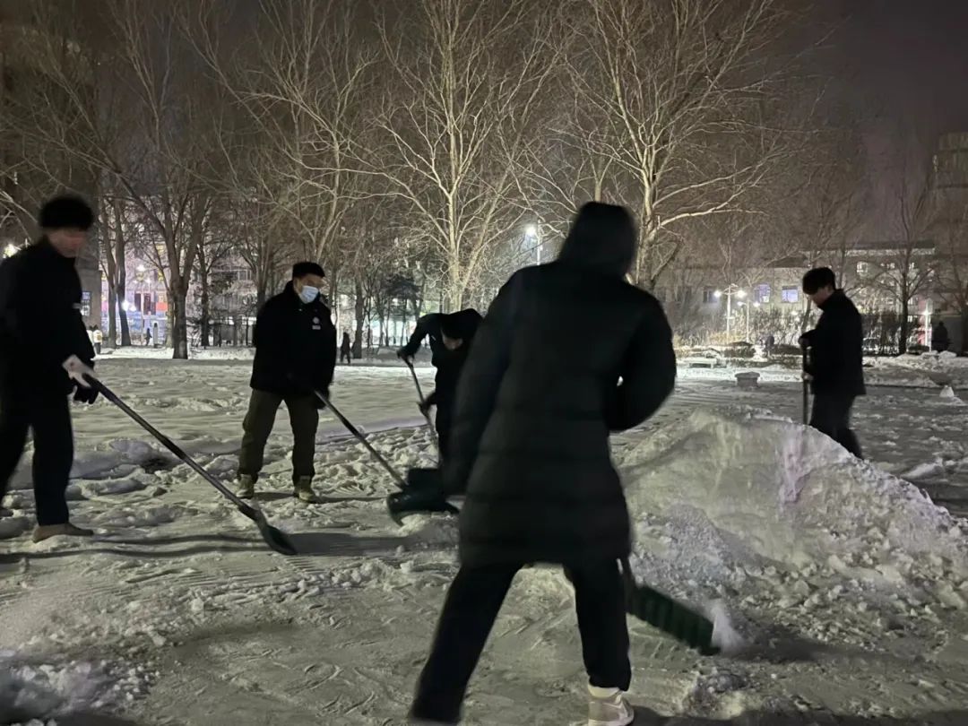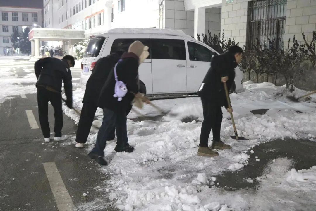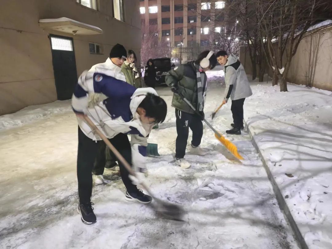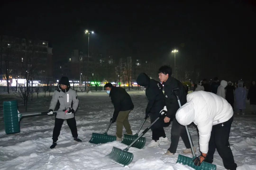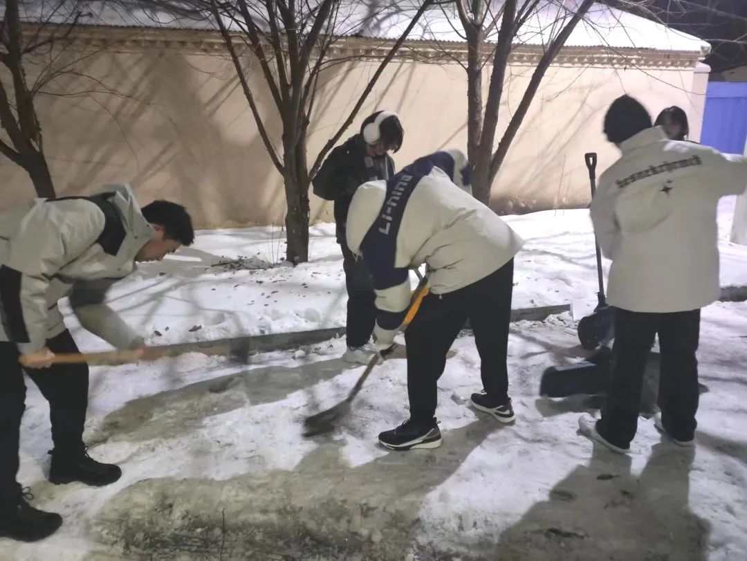 伴随着凛冽的寒风,气温骤降,大雪在净化空气的同时,也给道路交通及同学的出行带来诸多不便,为了积极应对路面积雪、积冰,方便我校师生出行,保障出行安全。2023年11月13日晚,在投资保险系团总支的组织带领下,我系有秩序地开展了以“以雪为令,益起清雪除冰”为主题的志愿服务活动。号召我系学生志愿者50余人参加了本次活动,志愿者们齐心协力对校内主要道路进行扫雪铲冰,确保我校师生出行安全、方便。