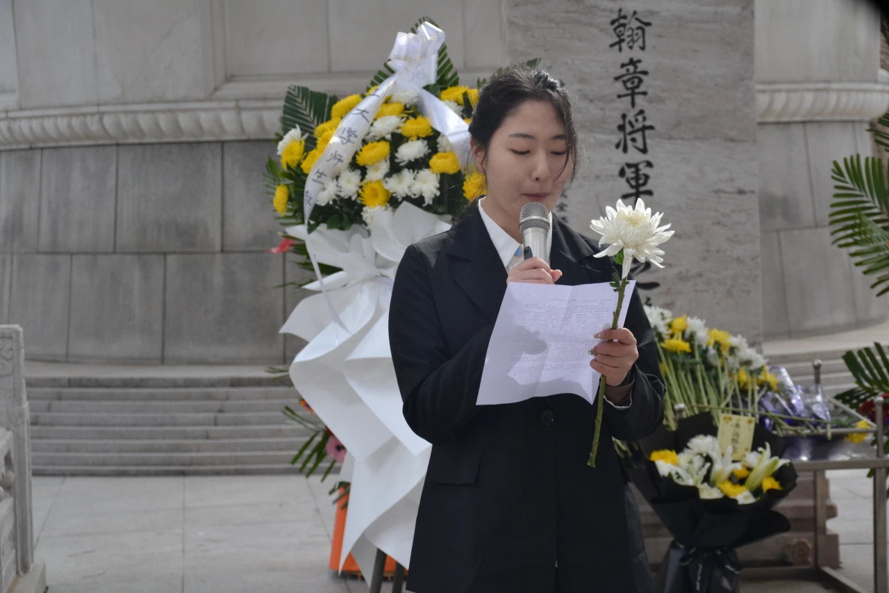活动伊始,全体人员肃立,高唱中华人民共和国国歌,聆听学生代表姚铄烁发言,回顾革命先烈的英勇事迹,号召大家要铭记历史,积极进取,勇担社会主义新青年的使命责任。全体师生在烈士纪念碑前庄严宣誓,继承革命烈士遗志,为中华民族的伟大复兴而努力奋斗。全体师生在纪念碑前依次向抗日民族英雄陈翰章将军敬献鲜花,向英烈表达崇高的敬意。集体默哀一分钟,缅怀为中国人民抗日战争胜利付出生命的革命先烈和民族英雄。祭扫仪式结束后,全体师生参观了陵园和烈士纪念馆,追寻革命先烈的铿锵足迹,瞻仰他们用血肉之躯谱写的英雄赞歌,感悟和平年代的来之不易。