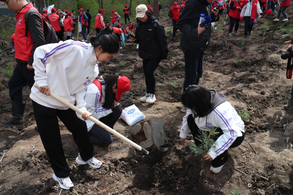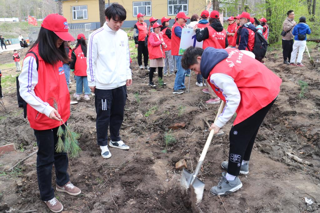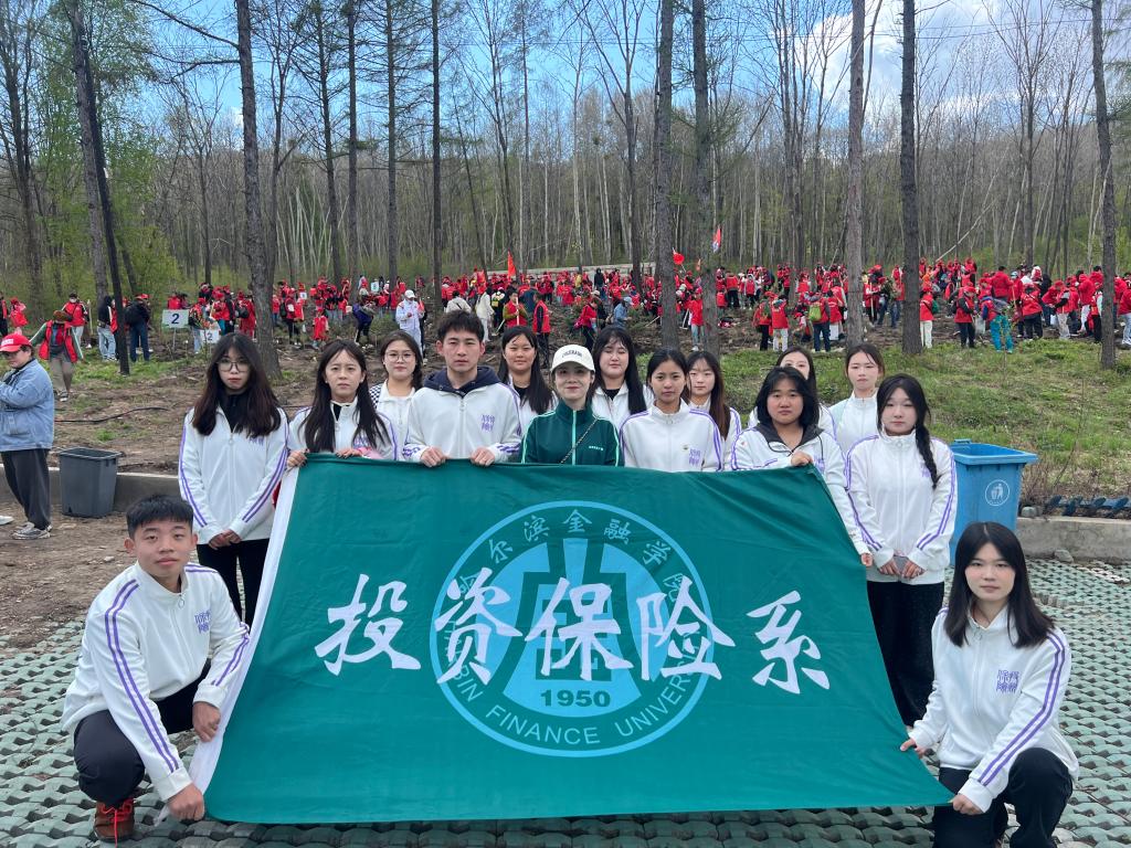 为传承和发扬“奉献、友爱、互助、进步”的志愿精神,为“绿水青山就是金山银山”发展理念助力、为生态优先的绿色发展之路助力,积极响应国家“绿色环保”号召,2024年4月27日,由黑龙江广播电视台(黑龙江省全媒体中心)主办、北大荒完达山乳业股份有限公司和哈尔滨秋林里道斯食品有限责任公司支持的“我为家乡种棵树”第十四届龙广电植树节活动在哈尔滨市巴彦县壹台山风景区隆重举行。哈尔滨金融学院投资保险系前行志愿者方队受邀参加助力,我系团总支书记于佳带领20名大学生志愿者参与了本次志愿服务活动。