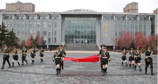 国旗护卫队迈着整齐划一的步伐,将国旗庄严护送上升旗台。在场师生无不昂首正姿,目光灼灼。旗帜于风中摇曳,师生同唱国歌,激昂的旋律激发内心斗志,伟大的国歌振奋赤子之心。