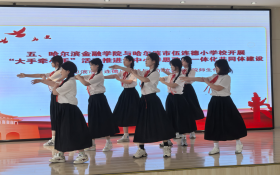 在推进会精心设计的特色活动环节中,我院学生代表带来了极具感染力的舞蹈节目《错位时空》。同学们以精湛的艺术表现力,深情地演绎了革命先辈为理想信念抛头颅、洒热血的壮丽篇章,生动展现了跨越时空的信仰力量与青春担当。节目不仅为伍连德小学师生呈现了一堂沉浸式的“艺术思政课”,更有效激发了小学生的爱国情怀与历史使命感。演出结束后,我院学生与伍连德小学学生开展了“大手牵小手”结对活动,在真诚互动中深化了对思政教育内涵的理解,展现了新时代青年学子的责任意识与榜样力量。