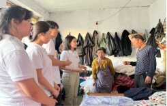 劳作之余,实践团专程走访村中老人。听老人讲述虎头村的过往故事,从邻里趣事到村庄变迁,温馨的交流让老屋充满欢声笑语。成员们不仅为老人们送上精心准备的慰问品,更通过贴心的陪伴了解他们的生活状况和实际需求,用真诚的关怀温暖着每一位老人的心,让敬老爱老的暖流在虎头村流淌。