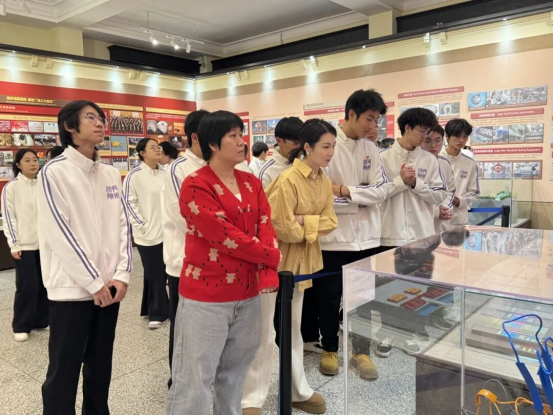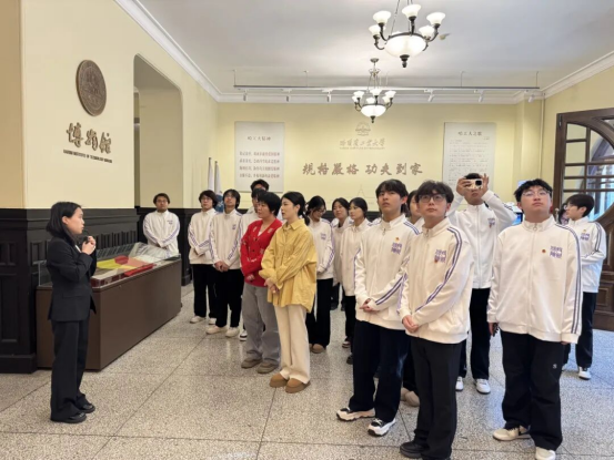 师生在讲解员的带领下进入哈尔滨工业大学博物馆。团员青年跟随讲解员,依次走过“初创岁月”、“建设发展”、“改革奋进”等展区,珍贵的历史文献、实物档案及影像资料展现了学校自建校以来,始终与国家命运紧密相连、与时代发展同向同行的奋斗征程;泛黄的建校文书、手写讲义,到早年师生使用的实验仪器、成果模型,勾勒出高校百年发展脉络。团员青年久久驻足于“八百壮士”专题展板前,认真聆听讲解员讲述上世纪五六十年代,一批青年学者扎根北疆、白手起家的故事。透过那些手稿、工具与老照片,艰苦年代里教师边学边教、边研边建的身影仿佛浮现眼前,深刻理解了“规格严格,功夫到家”校训精神背后的家国情怀与使命担当。