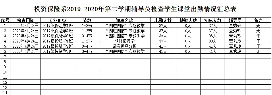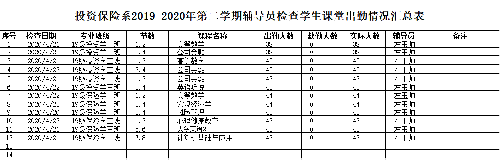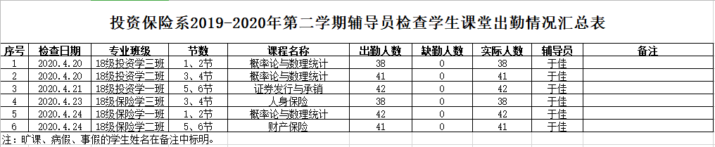 为进一步落实学风建设工作任务,保证线上教学质量,营造良好课堂环境,增强学生学习积极性,根据学院《关于进一步加强学风建设的意见》要求,投资保险系积极落实本系《学风建设工作实施方案》,现将第八周关于推进学风建设工作汇报如下: