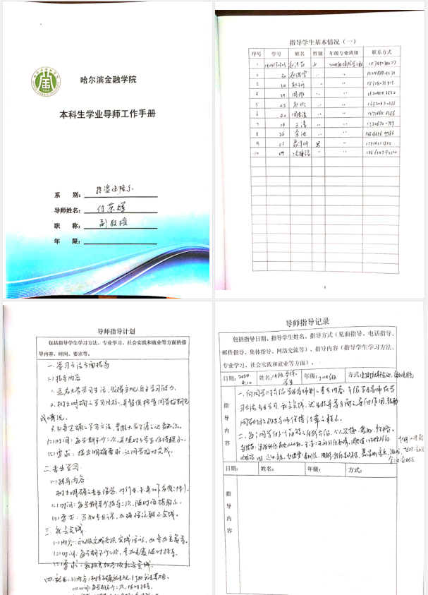 为进一步落实学业导师制度,在前期对2019级学生分组、分配导师、与学生建立联系的基础上,我系学业导师工作稳步推进,学业导师课上课下与学生及时沟通,了解学生基本情况,进行相对应的指导,并制定导师指导计划,认真填写我院《学业导师工作手册》。落实学业导师制,有利于教师对学生有针对性地进行学业指导,课上课下对学生进行课证融合的思想引导,加强学生对所学专业的认识,培养学习兴趣,提高学业质量。