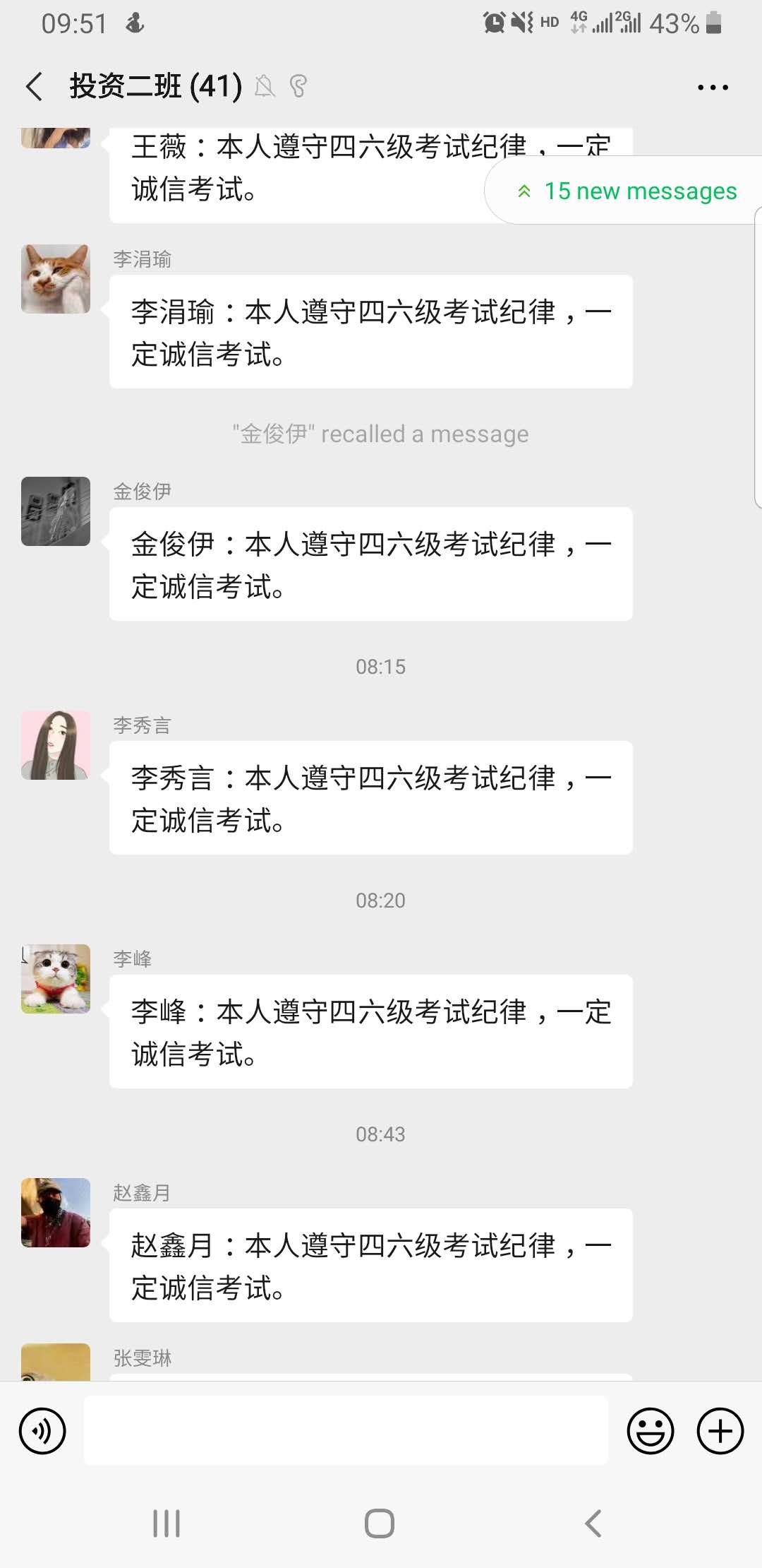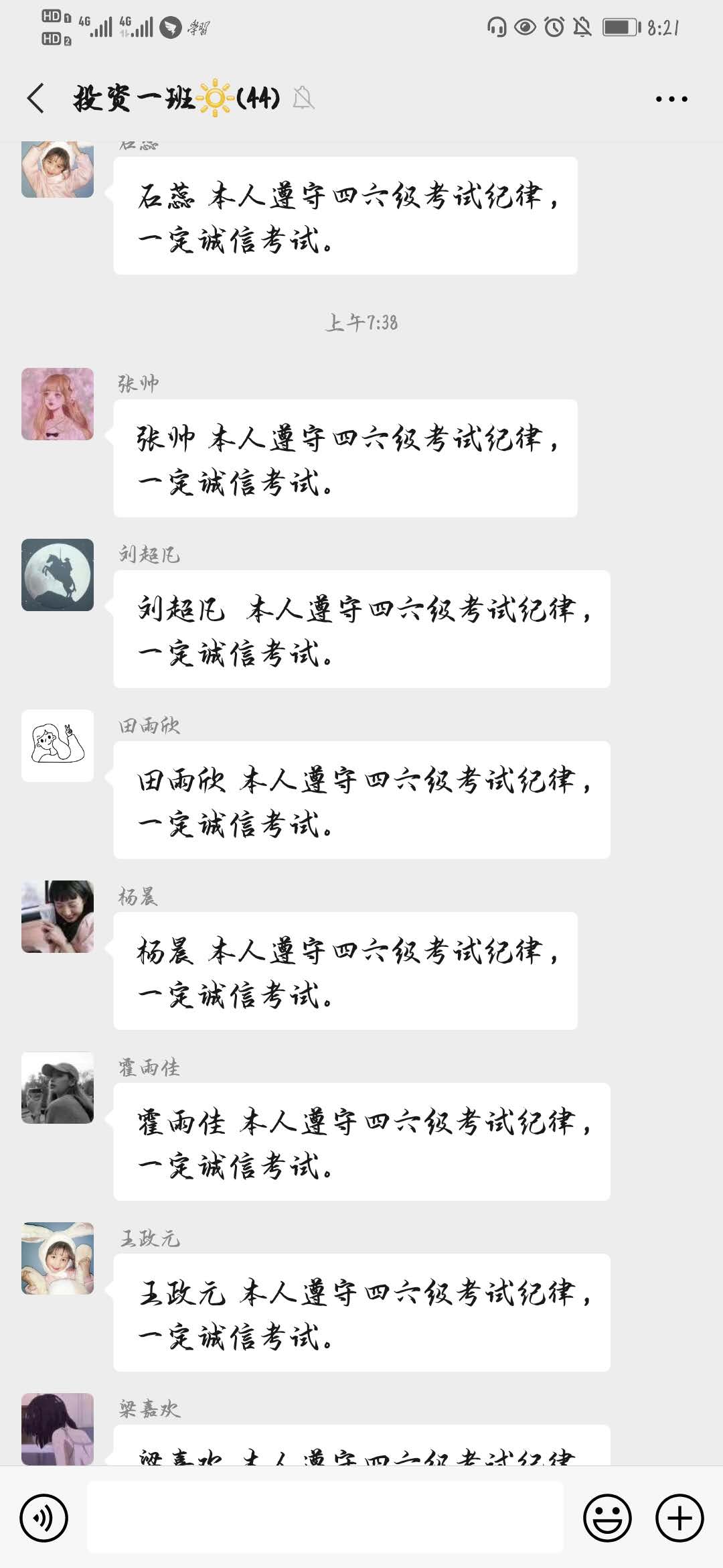 为加强考风考纪建设,杜绝考场违纪行为,做有品格、守纪律的合格大学生,投资保险系20172020年9月16日召开大学英语六级考试诚信教育大会,由2017级辅导员李宇鑫主持召开2017级应考学生参与会议