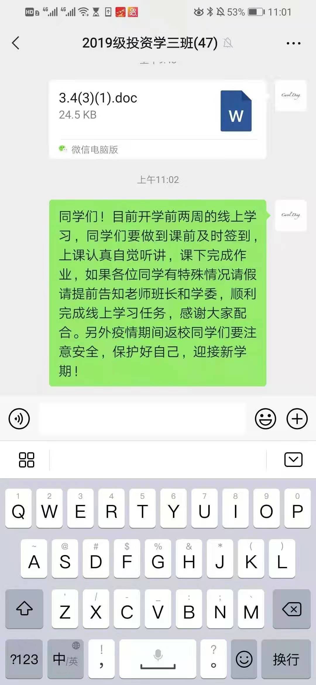 为进一步加强学风建设,保障线上教学质量,激发学生的学习积极性和主动性,营造勤学、上进的良好学习氛围,2021年3月3日至12日,投资保险系组织学生开展了系列学风建设活动。本次活动通过线上主题班会、征集优秀笔记、辅导员进课堂等方式开展,我系三个年级700余人参与了此次活动。