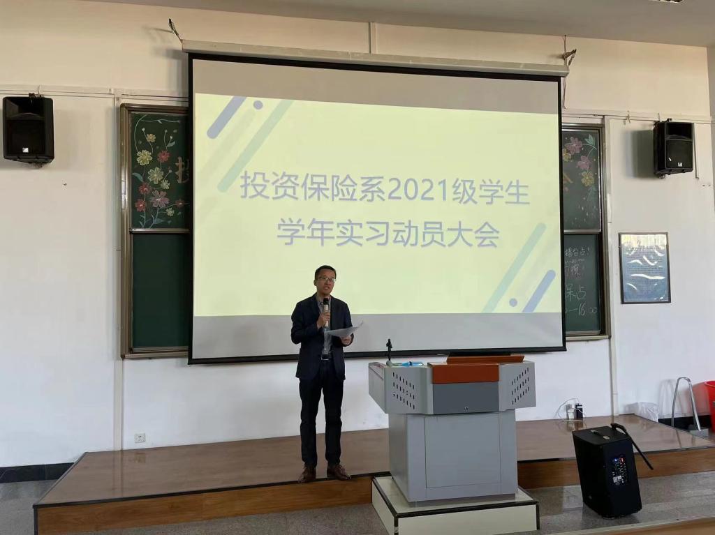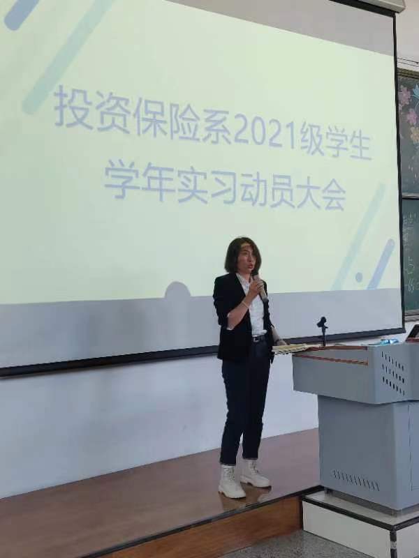 随后郭蕾书记强调了实习期间的具体要求、注意事项以及实习安全等一系列问题。希望同学们能严守实习公司的纪律,充分利用这次宝贵的实习机会,在保险公司和证券公司的实际工作岗位中做好规划,为今后的就业积累宝贵经验。在实习岗位上保持良好的形象,给实习单位留下良好的印象,为学院和我系争得荣誉。