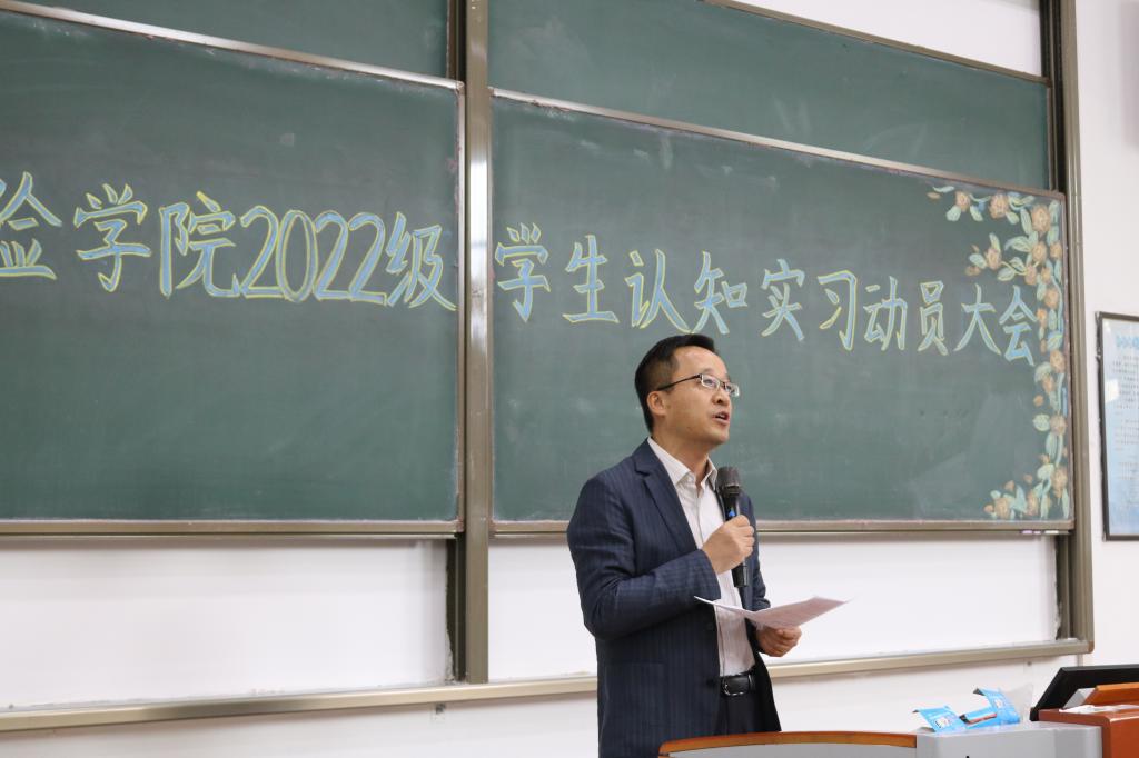 为进一步增强学生对专业的感性认识,帮助学生了解证券、保险行业发展现状、机构设置、岗位职责等内容,调动学生投身实习岗位的积极性,投资与保险学院于2024年9月25日在实验楼301召开2022级学生认知实习动员大会。投资与保险学院党总支书记郭蕾、院长刘永刚、副书记陈旭东、投资与保险学院全体教师及2022级全体学生参加了此次动员大会。