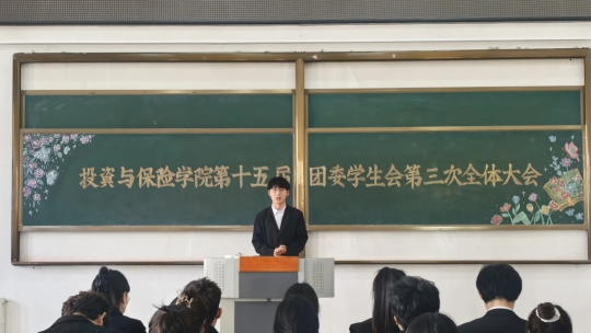 为加强学生干部队伍管理,充分调动学生干部积极性和主动性,2025年4月27日中午,投资与保险学院第十五届团委学生会在综合楼225召开第三次全体大会。会议由团委常务委员李奕炜主持,第十五届团委学生会全体成员出席了本次会议。会议全面总结了近期活动成果,并对运动会筹备、团队协作、个人职责等方面作出重要部署,进一步强化了学生干部的使命担当与责任意识。