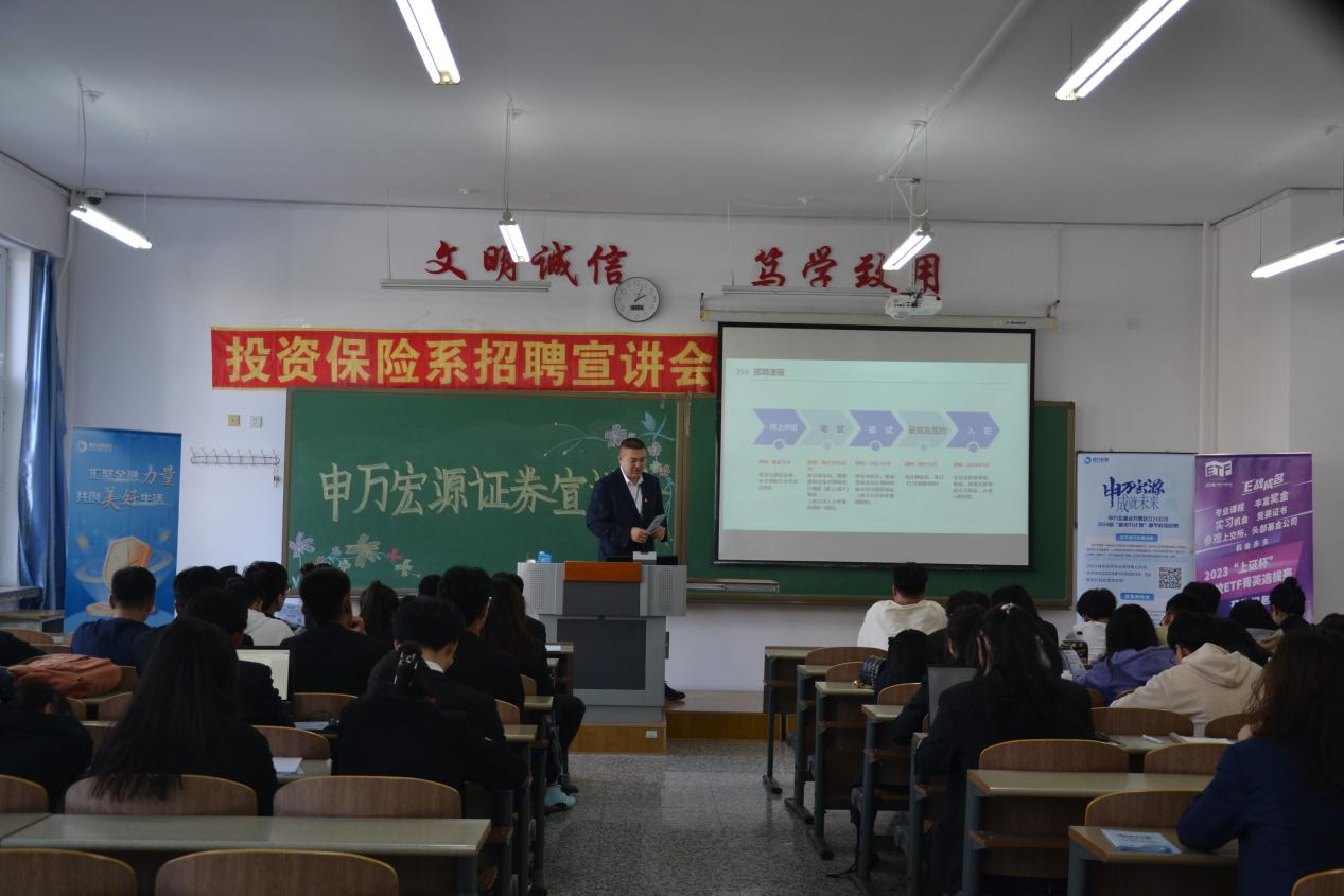 此次招聘会特别邀请到申万宏源证券有限公司王总为毕业生作宣讲。首先,王总从公司的历史变革、组织架构、经营情况、业务优势等方面进行介绍。旨在促进广大毕业生对职场的认识,激发毕业生就业积极性和主动性,促使毕业生尽早谋划个人职业、实现自主高质量就业。同时,与同学们进行了提问回答给奖品等有关活动,激发了同学们的热情。