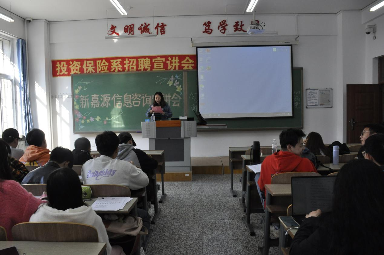为推动主题教育成果与学院重点工作有效结合,实际解决毕业生就业难题,促进投资保险系毕业生高质量就业,投资保险系于2023年10月25日在综合楼107教室开展2024届毕业生校园招聘宣讲会。投保系2020级辅导员唐琳老师,黑龙江新嘉源信息咨询有限公司宣讲人及我系45名毕业生参加了本次招聘会。
