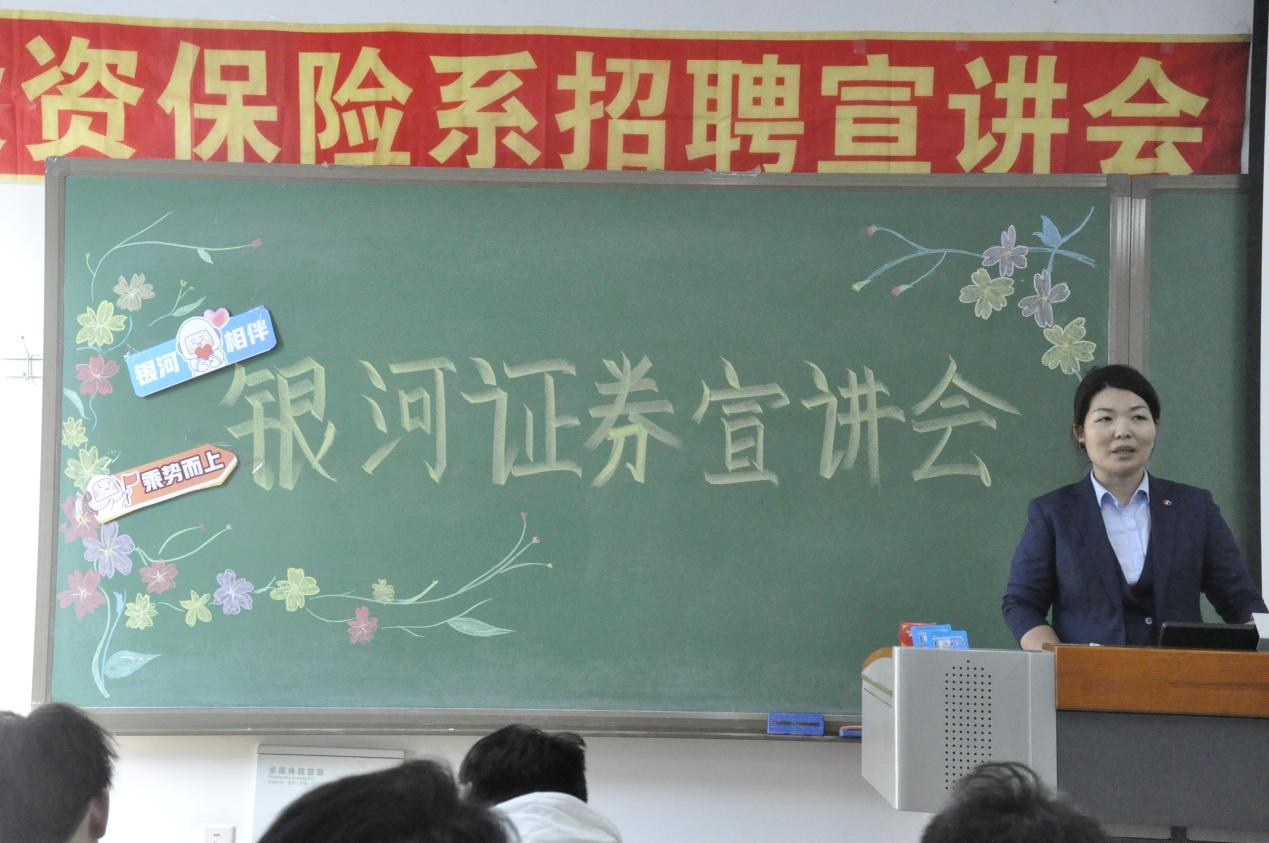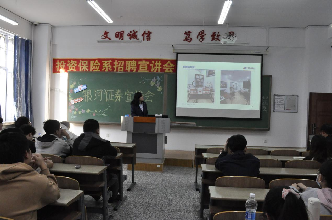为实际解决毕业生就业难题,更好应对当前严峻的社会就业浪潮,促进毕业生高质量就业。投资保险系于2023年10月25日在综合楼107教室开展2024届毕业生校园招聘会。投保系2020级辅导员唐琳老师以及中国银河证券股份有限公司宣讲人崔老师、衣老师及我系学生出席了会议。