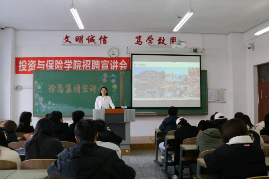 为了加强我院学生对金融行业未来就业方向的认知,进一步搭建校企人才沟通合作平台,给我院学生提供更加全面有效的服务,投资与保险学院携手珍岛集团于2024年10月16日10:00在综合楼103召开了招聘宣讲会,我院2025届部分毕业生参加此次招聘宣讲会。