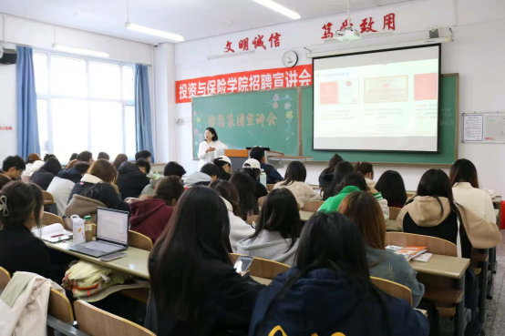 本次招聘的岗位有营销类。首先,由公司宣讲人黄丹向大家介绍了保险行业的发展前景以及中国市场保险行业的形势其后,带大家了解了公司的公司文化、产业布局、薪酬福利待遇、2024年校招岗位等。随后,通过各种优秀校招代表的工作经历以及在公司所获得的荣誉与收获,激发了在场同学们就业的强烈欲望。并有四名同学积极留下来面试。最后,在此氛围下,公司负责人表示希望同学们能够学业有成,早日找到自己心仪的工作。