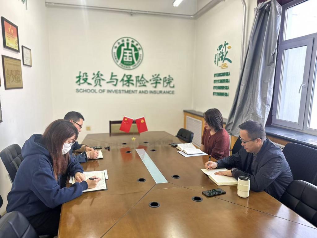 为全面贯彻落实学校2025届毕业生就业工作会议精神,推动投资与保险学院2025届毕业生就业服务工作,提升学院毕业生就业质量,1月6日下午,我院就业工作小组成员在经管楼五楼会议室召开2025届毕业生就业工作推进会议。投资与保险学院党总支书记郭蕾、院长刘永刚、党总支副书记陈旭东、2025届毕业班辅导员李宇鑫参加会议。