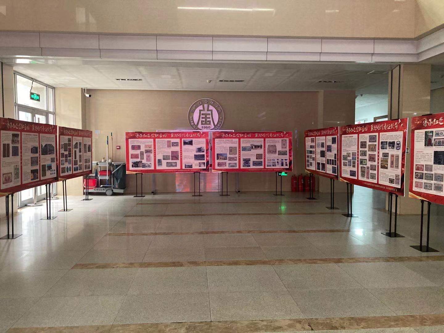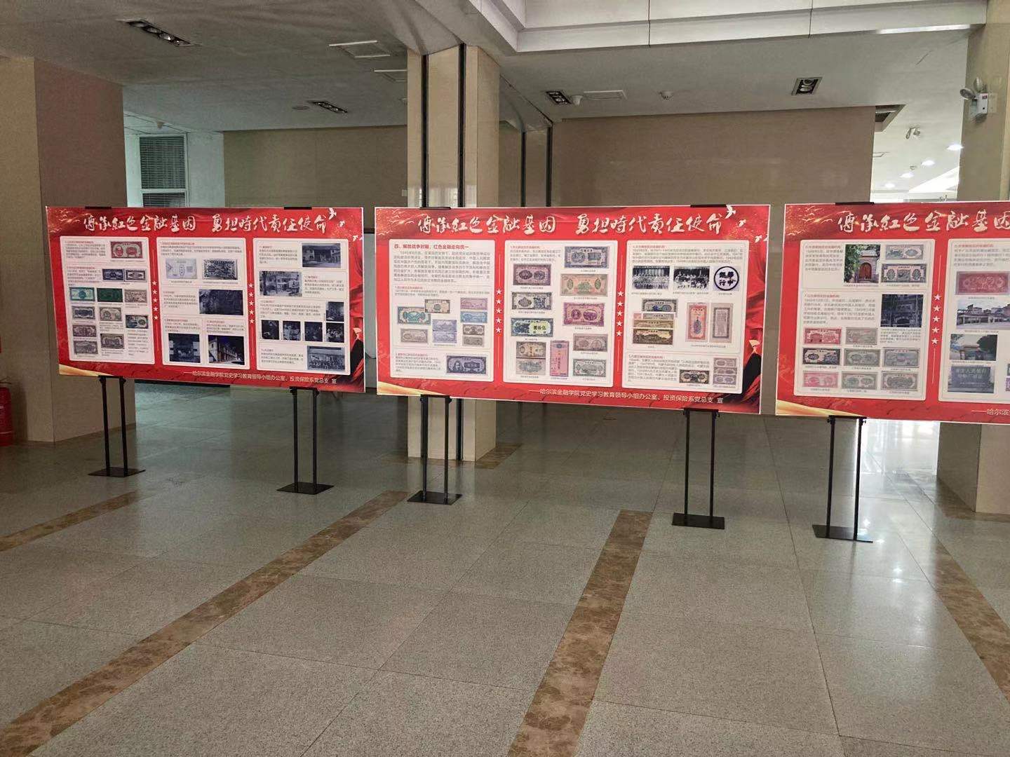 4月15日,由哈尔滨金融学院党史学习教育领导小组主办、投资保险系党总支承办的“红色金融”图片展在综合楼一楼大厅展出。展览分第一次国内革命战争时期红色金融艰苦探索、第二次国内革命战争时期红色金融逆境生存、抗日战争时期红色金融扩大发展、解放战争时期红色金融走向统一四个单元,展出珍贵图片200余张,梳理红色金融历史脉络,全面展示党领导下的红色金融历经革命战争的考验、经济浪潮的洗礼,留下的光辉足迹和彪炳史册的奇迹。