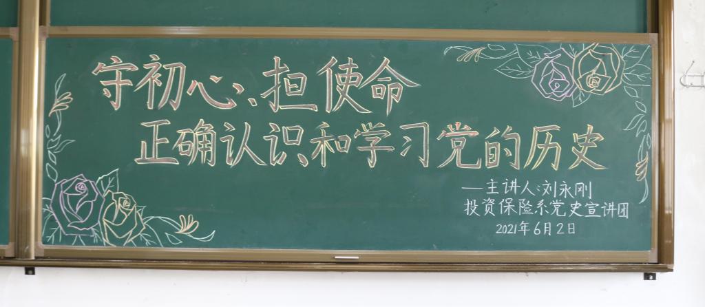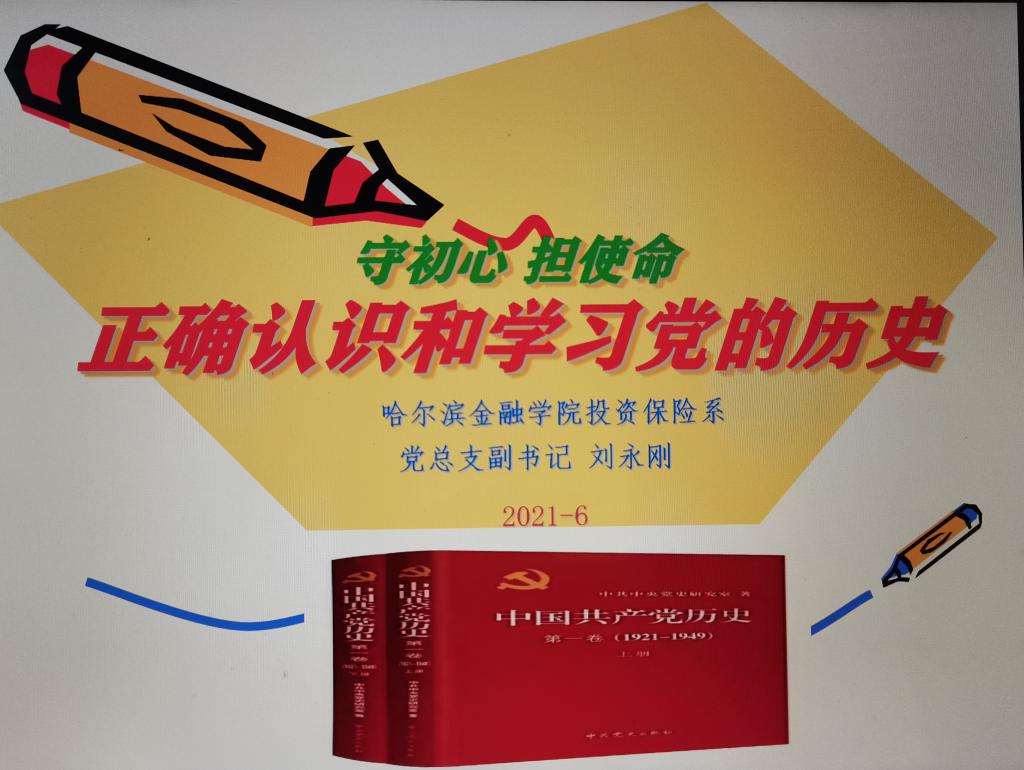 为庆祝中国共产党成立100周年,深入学习贯彻习近平新时代中国特色社会主义思想,推进党史学习教育各项工作扎实开展,营造“学党史、悟思想、办实事、开新局”的浓厚氛围,积极响应学院号召,2021年6月2日,投资保险系在综合楼228召开“守初心、担使命,正确认识和学习党的历史”宣讲会。系党总支副书记刘永刚主讲,系团总支副书记于佳、党史宣讲团全体成员、在校生全体党员和积极分子参加了此次会议。